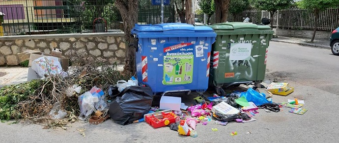 "Καλησπέρα σας! Τα ίδια Παντελάκη μου, τα ίδια Παντελή μου... όπως κάθε χρόνο χαμός στη γωνία Βυζαντίου και Ροδόπης από τη βρώμα! Ειδοποιήθηκε από κάτοικο της περιοχής ο Δήμος... αλλά τίποτα! Και τώρα που έκλεισε και το Νηπιαγωγείο (και τέλειωσαν και οι εκλογές), σιγά μην ασχοληθούν! Και πριν υπήρχε βρώμα, αλλά κάθε καλοκαίρι τα ίδια... βρώμα και γύφτοι να τα κάνουν χειρότερα! Ζητάμε καθαριότητα... ζητάμε μετακίνηση κάδων από το σημείο αυτό (έξω από Νηπιαγωγείο!!!)... ζητάμε οι γυφτοί να μην έρχονται να τα κάνουν χειρότερα! Ο Δήμος θα βοηθήσει ποτέ; Εμείς ως γειτονιά θα στέλνουμε καθημερινά φωτογραφίες!!! Ορίστε ένα δείγμα!!!!"